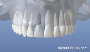 Now the healing begins. The length of time varies from person to person, depending upon the quality and quantity of bone. In some cases, implants may be restored immediately after they are placed. The surgeon will advise you on follow-up care and timing. After the initial phase of healing, the surgeon places an abutment (support post) or a healing cap onto the dental implant during a brief follow-up visit. This allows gum tissue to mature and provides access to the implant.
